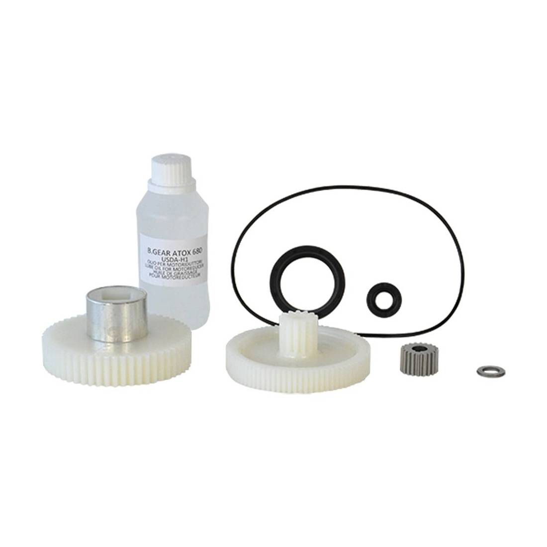 Set composto da 1 flacone di olio, guarnizioni ed ingranaggi. Adatto per motoriduttore Hp 0,30.