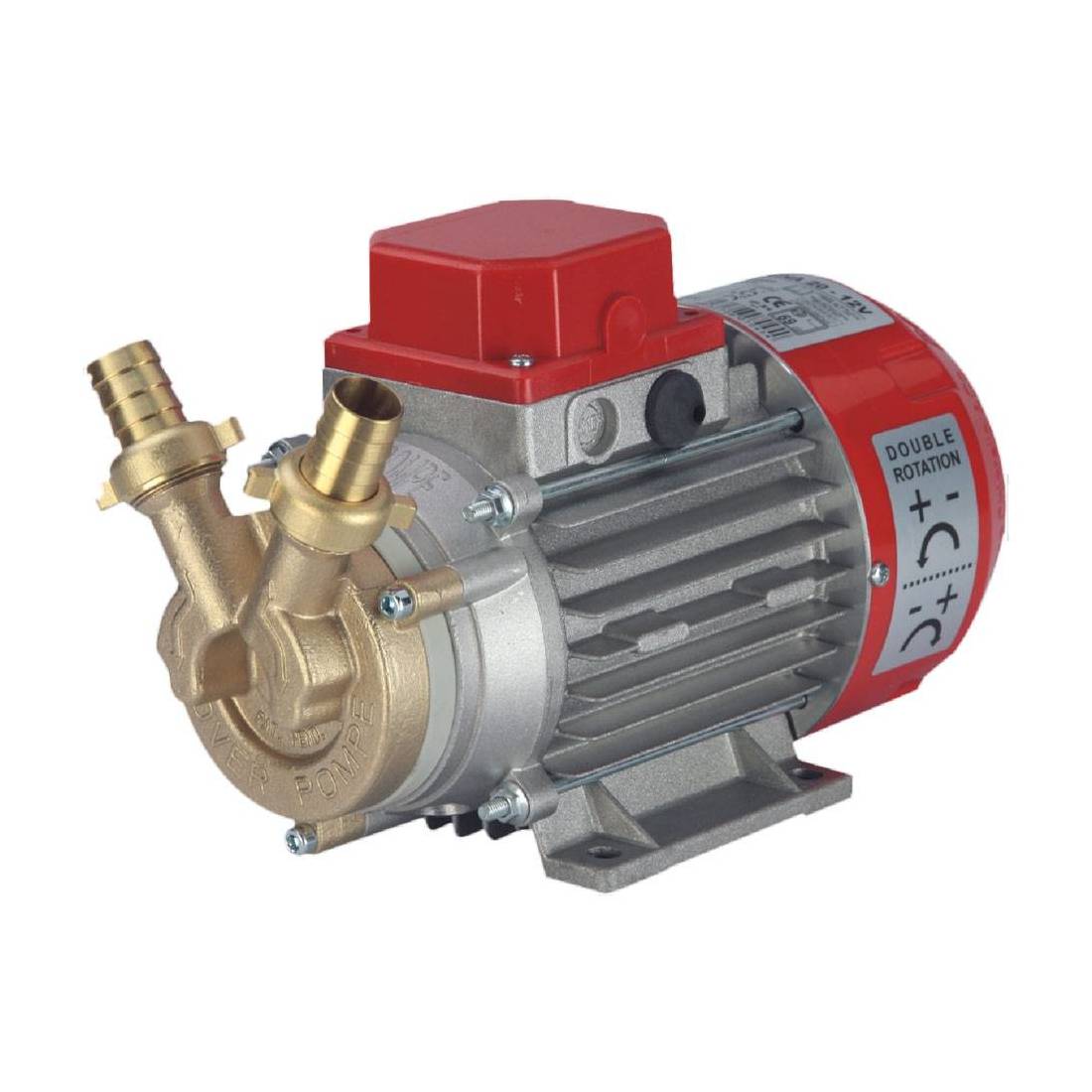 Alimentazione a batteria 12V. Autoaspirante bisenso, pompa in bronzo, anello liquido laterale con girante a geometria stellare. Indicata per il travaso di vino, latte, olio, gasolio.