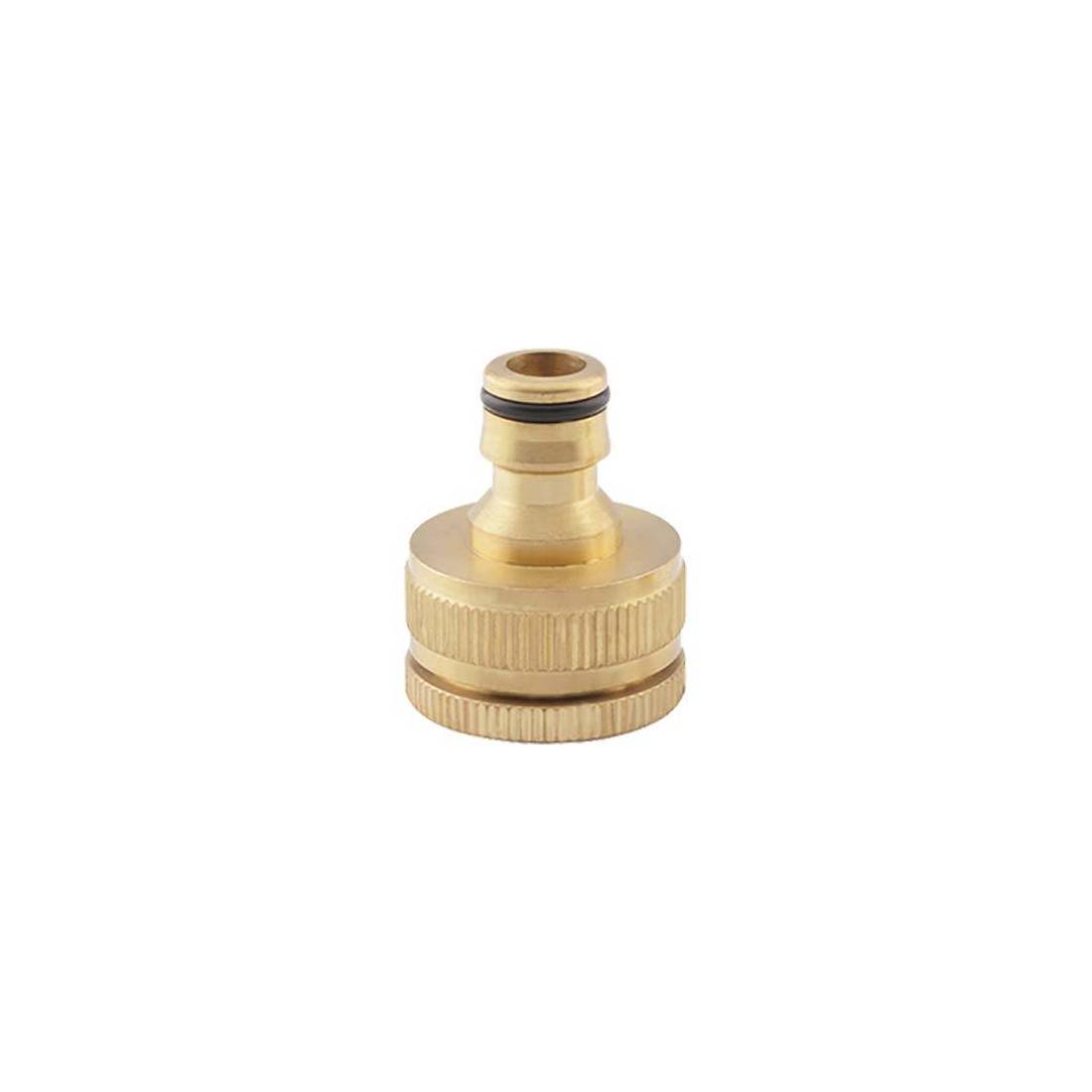 En laiton. Avec raccord rapide au porte-tuyau et filetage femelle avec réduction.
