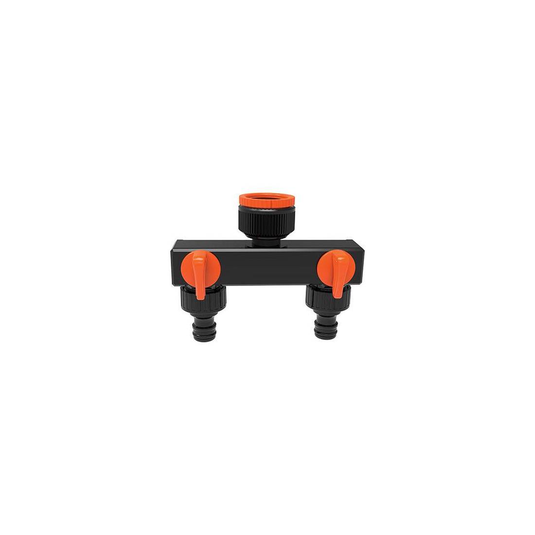 Équipée de 2 robinets indépendants avec raccords rapides au porte-tuyau. Raccord au robinet avec filetage femelle et réducteur.