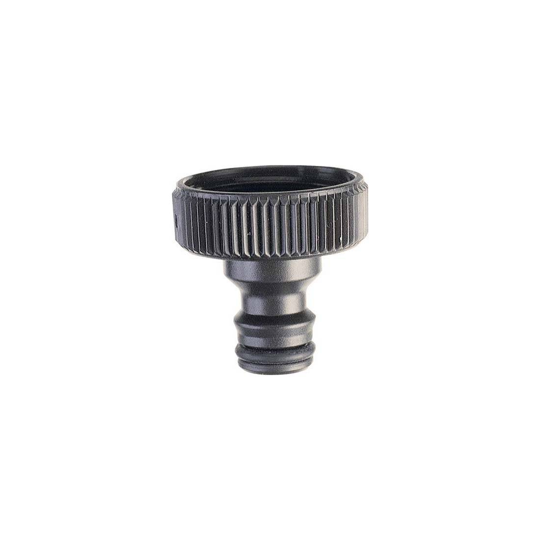 Filetage femelle à visser sur le robinet. Surface antidérapante. Raccord rapide au porte-tuyau.