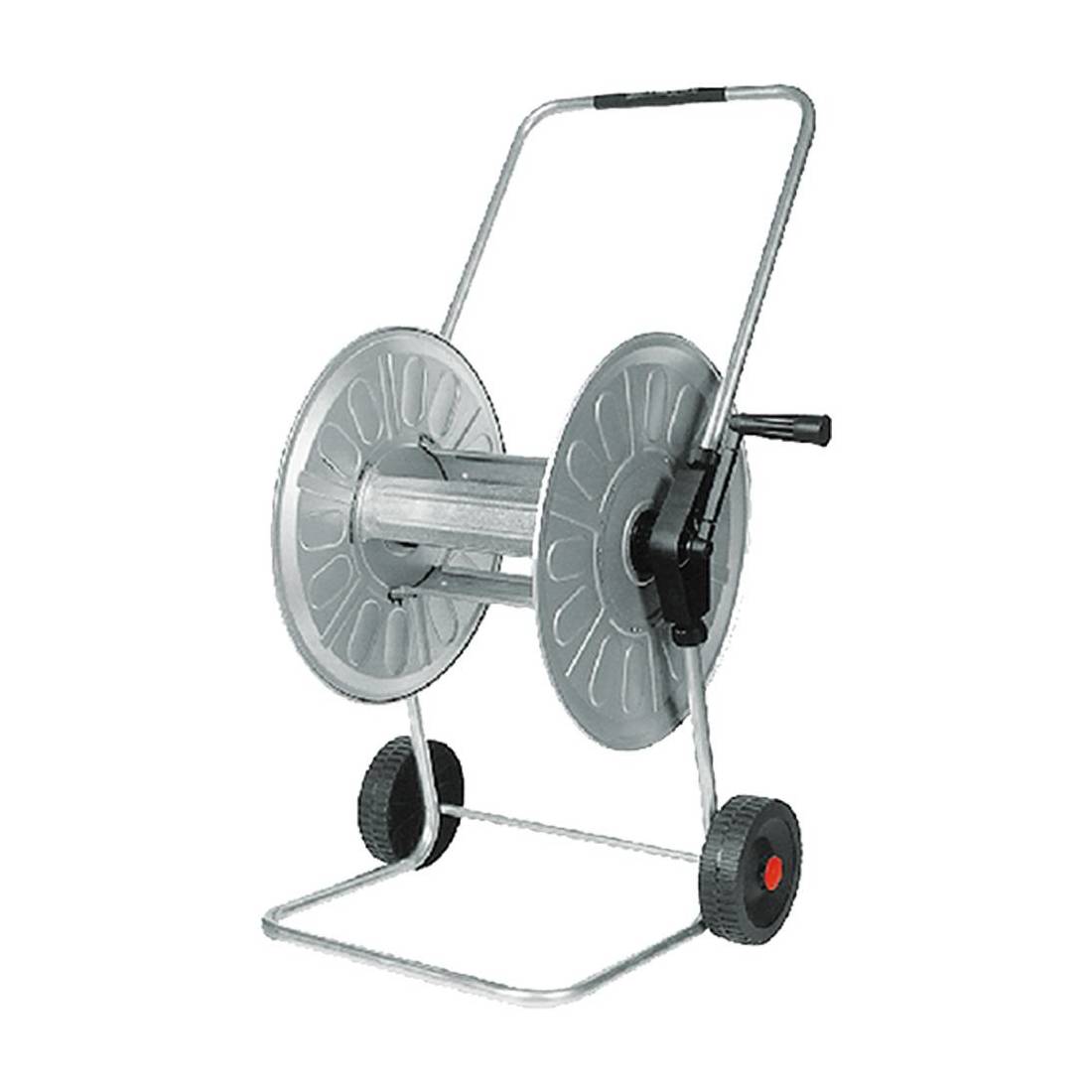Tamburo e telaio in acciaio zincato. Manovella con anima in acciaio e rivestita in plastica. Raccorderia automatica in plastica. Dotato di ruote per lo spostamento.