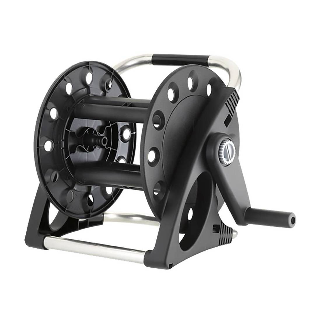 Capacità massima di avvolgimento 20 mt (Ø 1/2). Fornito con raccordo automatico per il collegamento del tubo.