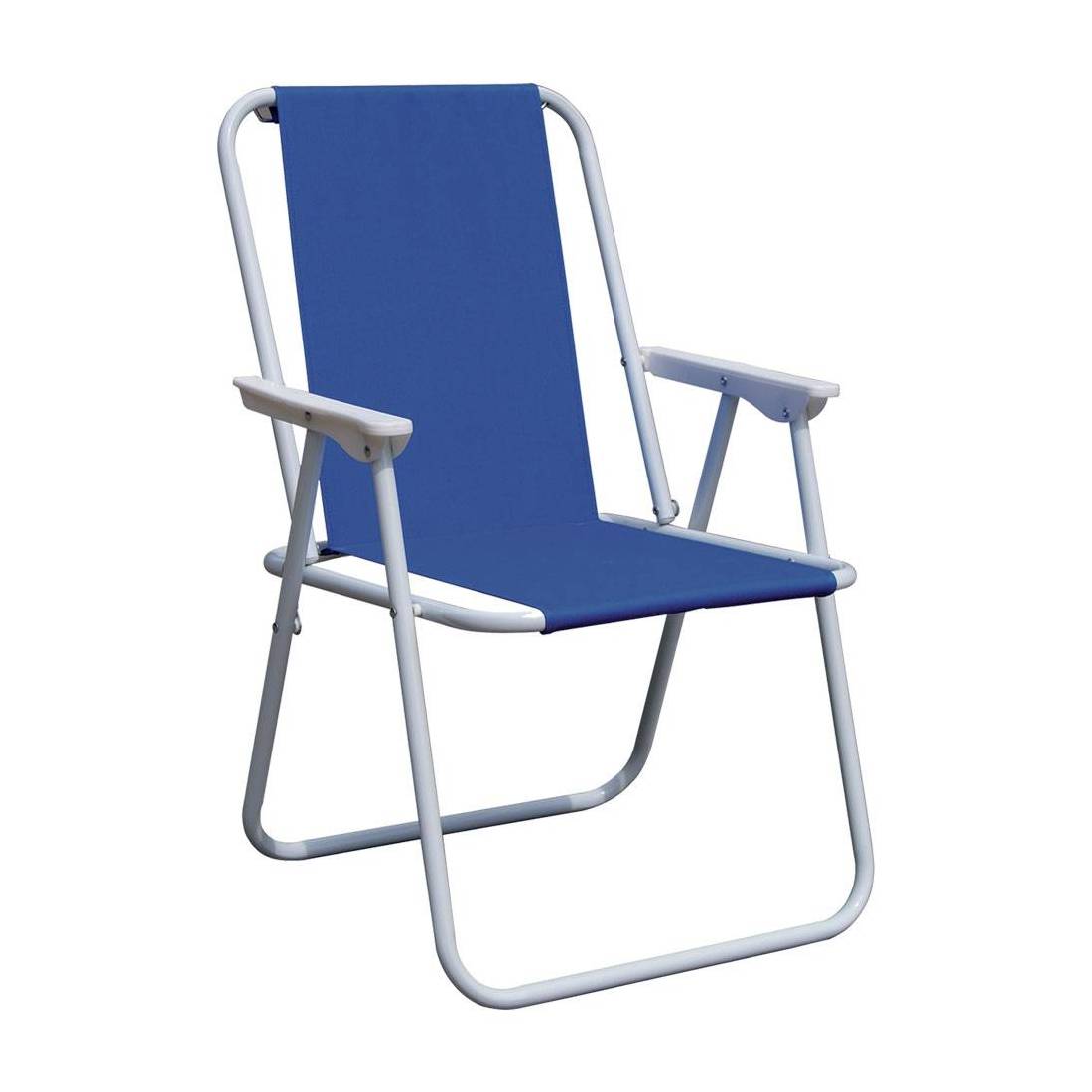 Struttura in ferro, braccioli realizzati in plastica, tubolari da Ø cm 1,8. Tessuto in poliestere colorato.