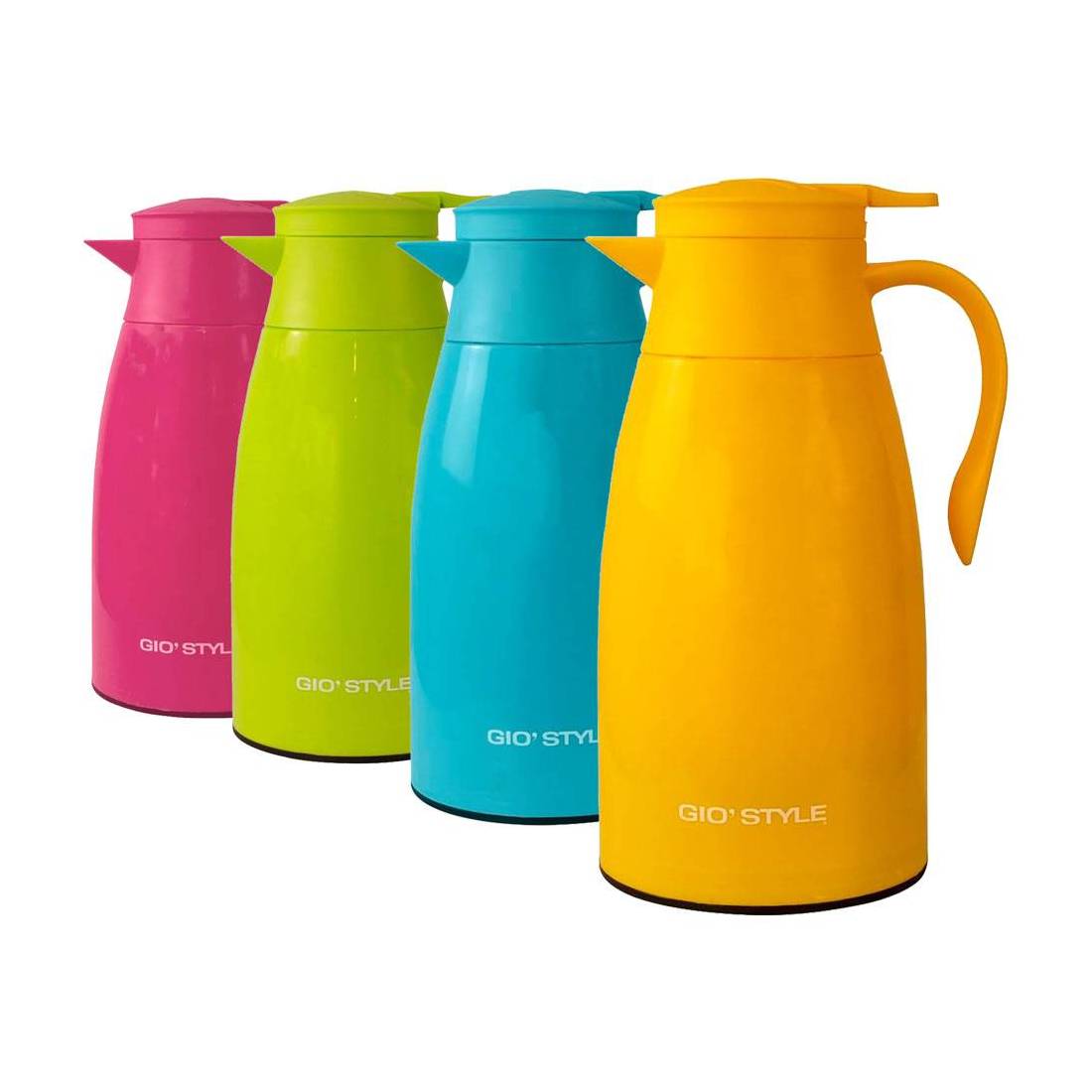 Interno in vetro e cuneo versatore antigoccia. In grado di mantenere la temperatura ideale a lungo sia di bevande fresche che calde. Colori assortiti.