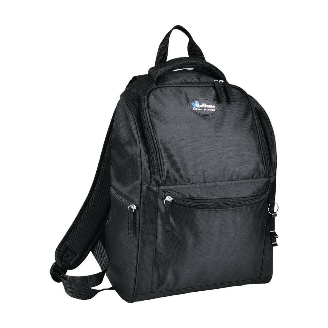 Adatto per conservare bevande ed alimenti in genere, preservandone freschezza e qualità. Rivestimento esterno in poliestere ed alluminio riflettente interno. Tasca frontale con zip, maniglia e spallacci regolabili imbottiti. Massimo isolamento in alta densità. Isolamento termico 8 mm. Con accessorio apri bottiglie. Colore nero.