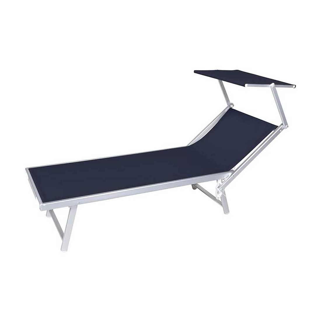 LETTINO SPIAGGIA CON PARASOLE cm 189 x 61 x h 38 - telo blu navy
