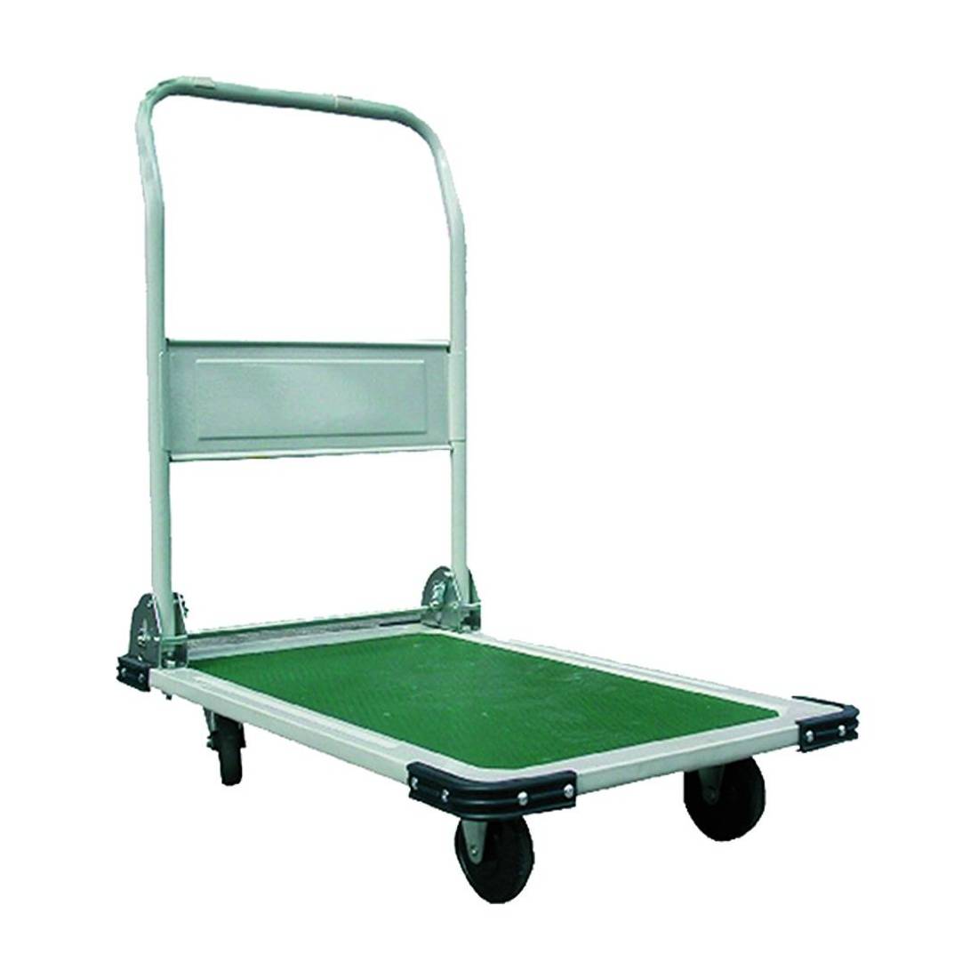 Struttura in ferro. Manico ripiegabile. Dimensioni: cm 73x47x82. Tubolare da Ø 25 mm. Ruote da Ø 100 mm.