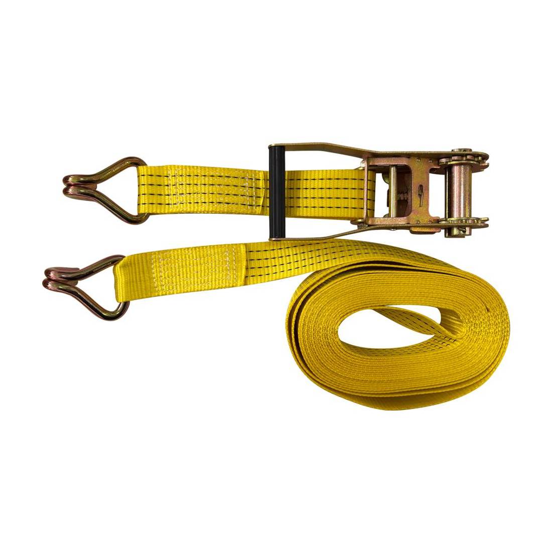 Con tenditore a cricchetto. Realizzata in poliestere resistente, supporta un carico fino a 2000 kg. Dotata di gancio. Colore giallo. Ideale per trasporti e movimentazioni in ambito industriale e logistico.