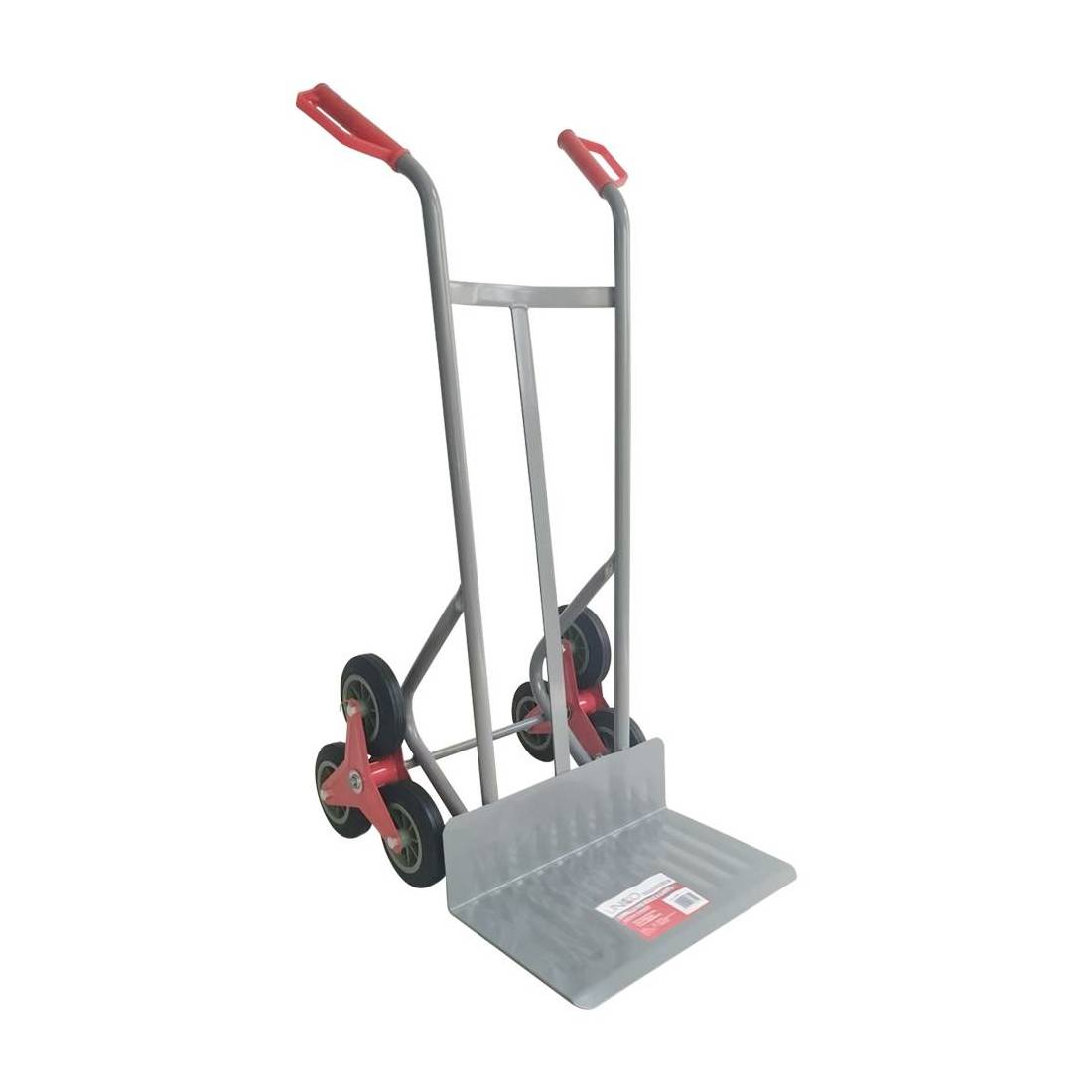 In acciaio verniciato. A 6 ruote piene. Tubolare da Ø 32 mm, Ø ruote 160 mm, pedana di carico 45x25 cm. Portata 200 kg.