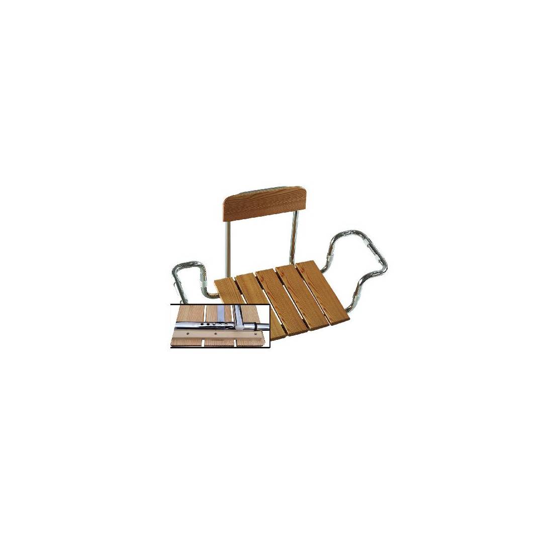 SIÈGE POUR BAIGNOIRE EN MÉLÈZE AVEC DOSSIER CADRE CHROMÉ Dimensions : Mélèze - Chrome