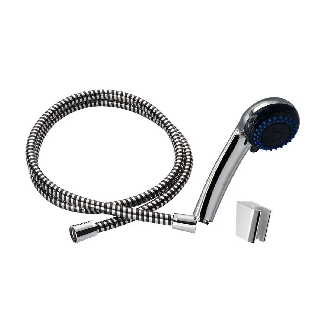 Anticalcare. In ABS, cromata. Tubo flessibile da 150 cm di lunghezza. Supporto da parete in ABS cromato. Blister.