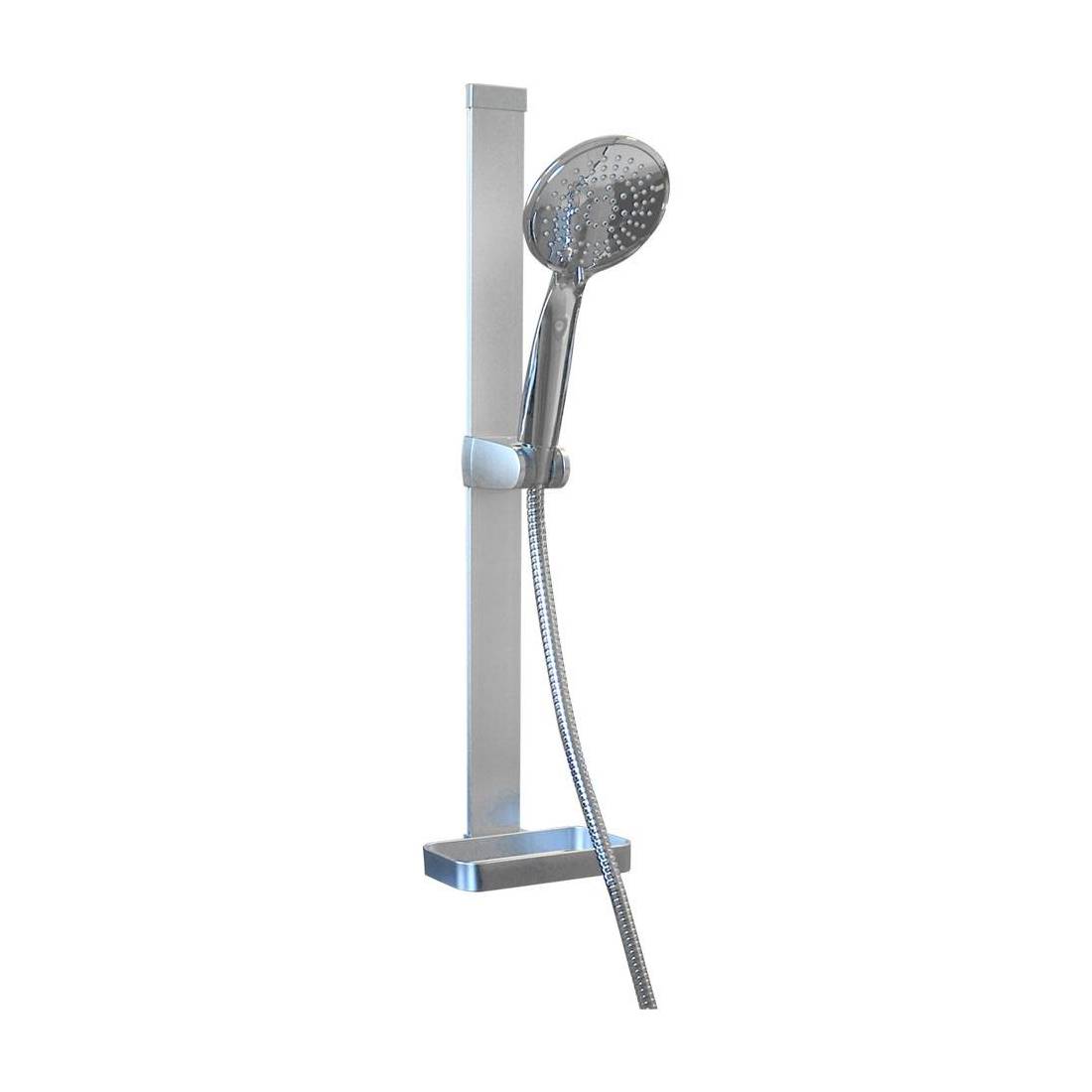 Doccetta in ABS, cromato, flessibile in acciaio inossidabile con doppia chiusura, Ø 13 mm, lunghezza 150 cm. Barra scorrevole in alluminio satinato lunghezza totale 60 cm. Con portasapone.