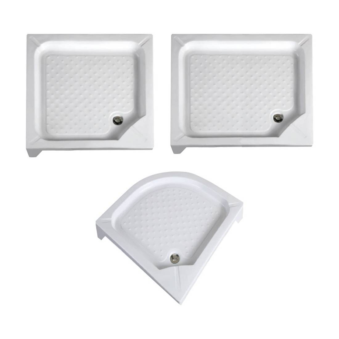 In resina, superficie zigrinata antiscivolo. Completo di piletta e sifone.