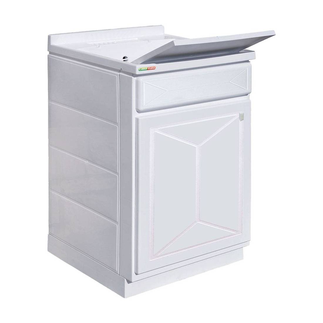 In plastica stampata ad iniezione. Vasca stampata, altamente resistente a tutti gli acidi. Soluzione adeguata per gli angoli casa adibiti alla pulizia, è indicato per il trattamento a mano di capi delicati o per operazioni di lavaggio particolari. Ideale anche per giardini, terrazze, garage e cantine. Per uso interno ed esterno. Completo di asse in plastica, sifone, cerniere in metallo e accessori per il montaggio. Colore bianco. Prodotto 'Made in Italy'. Dimensioni espresse (larghezza x profondità x altezza).
