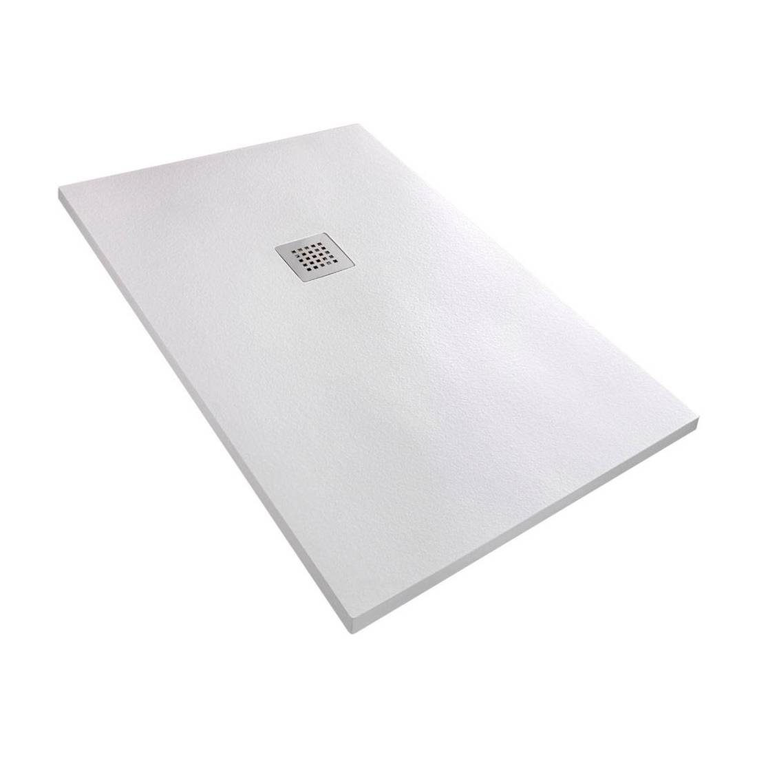 Realizzato in marmo-resina con una particolare texturizzazione che conferisce alla superficie un elegante effetto 'stone' ed un rilievo che lo rende calpestabile antiscivolo. Completo di griglia inox. Fornito di piletta. Dimensioni espresse: lunghezza x larghezza. Altezza piatto 2,5 cm.