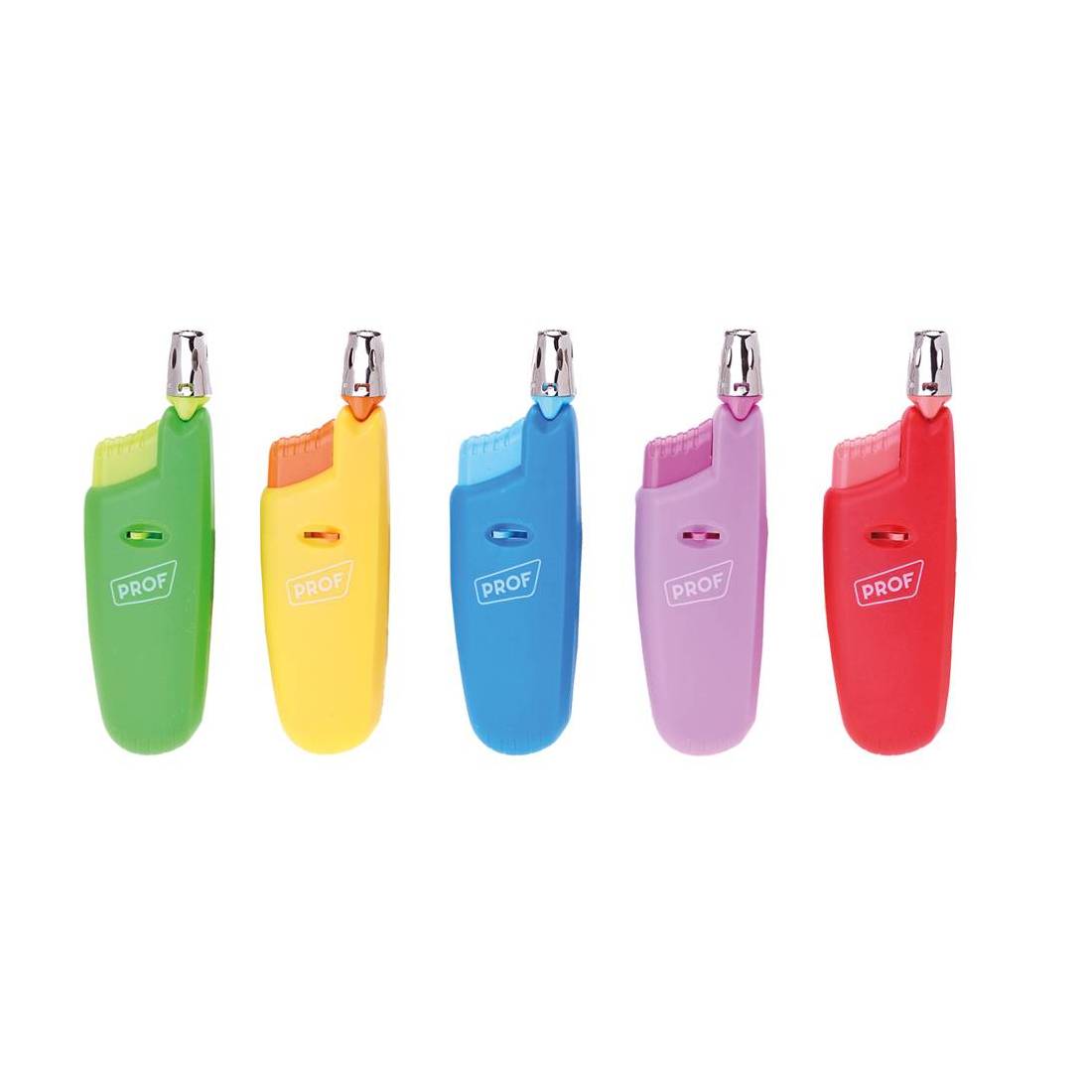 A fiamma, ricaricabile. Con canna telescopica. Colori assortiti, display in cartone.