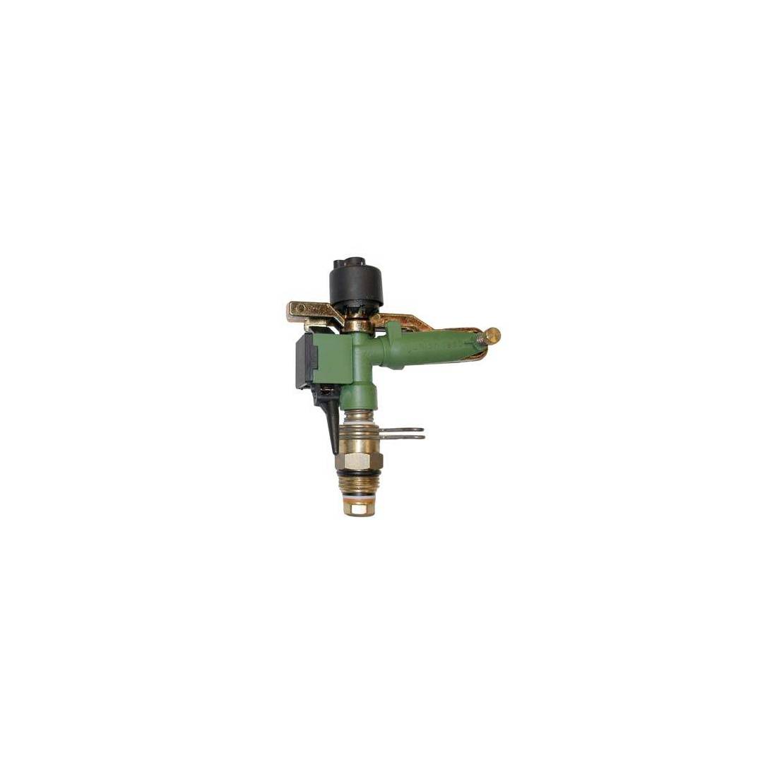 En laiton, alliage léger et rilsan. 1 jet avec brise-jet réglable. Pour l'irrigation sous les arbres des vignobles et des vergers, des serres et des zones fortement ventilées. Raccord avec filetage mâle. Pression : de 1,5 à 4 bars. Portée : de 5,5 à 8 mètres. Débit : de 9 à 15 litres/minute. Surface irriguée : de 95 à 201 mètres carrés. Inclinaison à 4°.