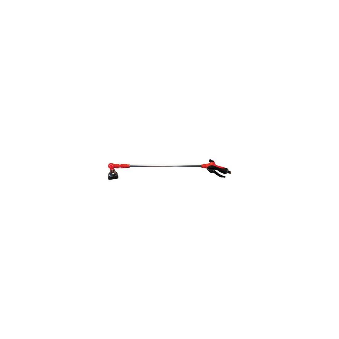 Avec huit fonctions d'arrosage. Poignée avec levier et réglage du débit. Tête orientable et tige télescopique en aluminium de 83 à 130 cm. Avec raccord rapide.