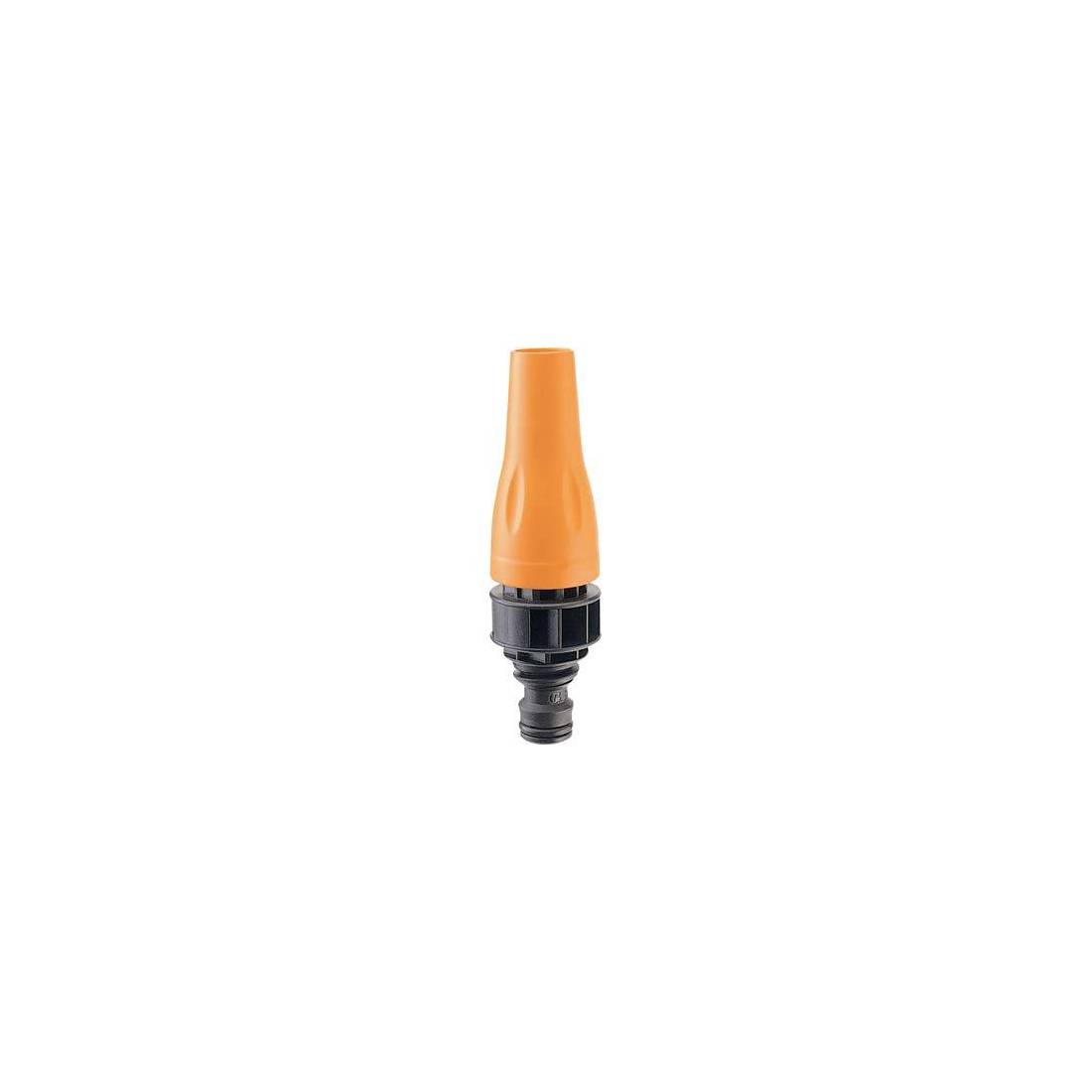Ses dimensions réduites le rendent particulièrement maniable et ne fatigue pas, même en cas de forte pression. Réglage du jet, de pulvérisé à droit. Débit maximal : 12 l/min à 4 bars. Raccord rapide.