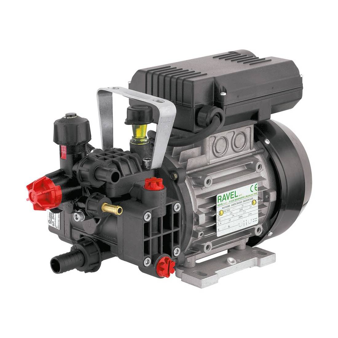 Motore elettrico monofase. A due membrane, portata 13 lt/min. pressione 20 bar. In alluminio anodizzato e acciaio AISI 303/304. Guarnizioni in NBR. Cassa pressofusa, meccanismo a bagno d'olio, serbatoio in plastica trasparente per controllo del livello. Smorzatore pneumatico, chiusure metalliche galvanizzate. Indicata per trattamenti di colture nel settore agricolo in abbinamento su carrelli, macchine per trattamenti di uliveti, vigneti, frutteti in genere e giardino con prodotti fitosanitari in regime di media pressione. Con interruttore cavo e spina. Alimentazione 220/240V -50Hz.