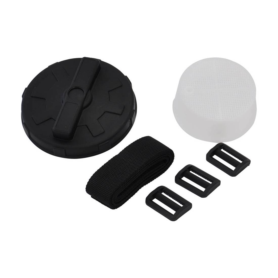 Composizione: 1 tappo a vite, 1 filtro, 1 bretella in nylon con supporti di regolazione in plastica.