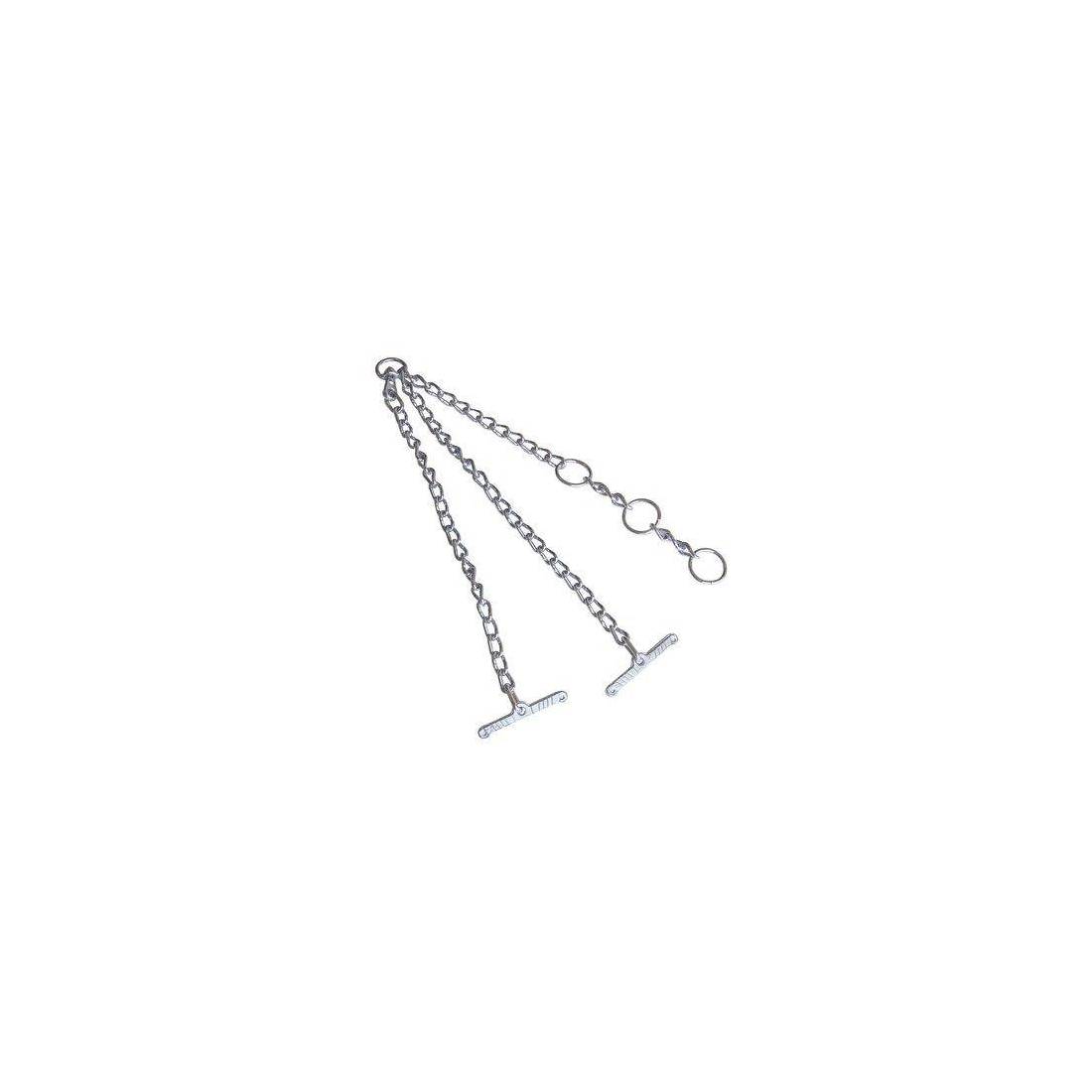 En acier galvanisé. 3 brins avec chaîne à maillons torsadés.