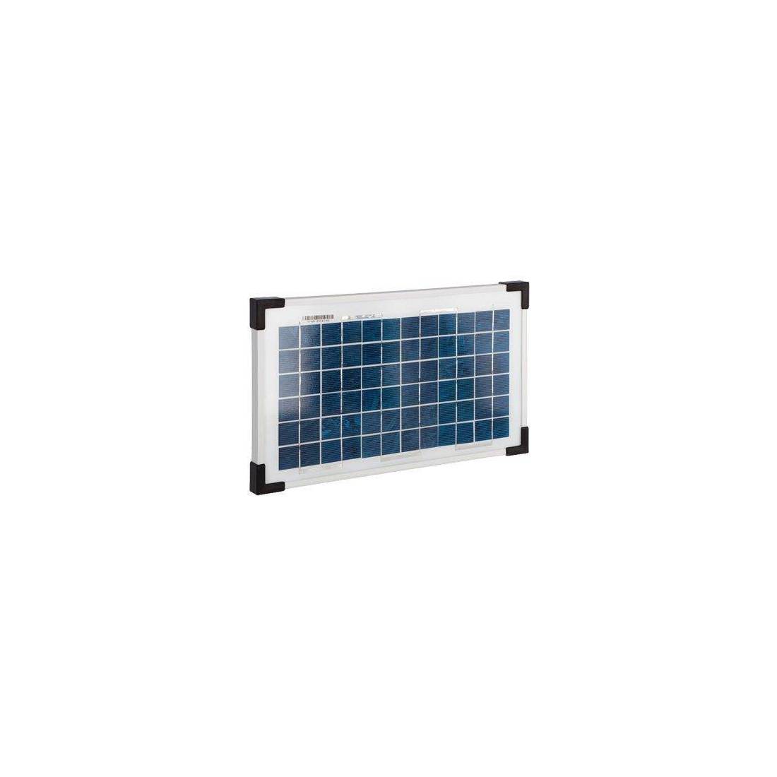Support en acier inoxydable pour montage sur boîtier métallique, connexion directe à une batterie 12 volts. Longueur du câble solaire : 100 cm. Puissance : 15 watts avec régulateur de charge. Dimensions : 37,5 x 37,2 cm.