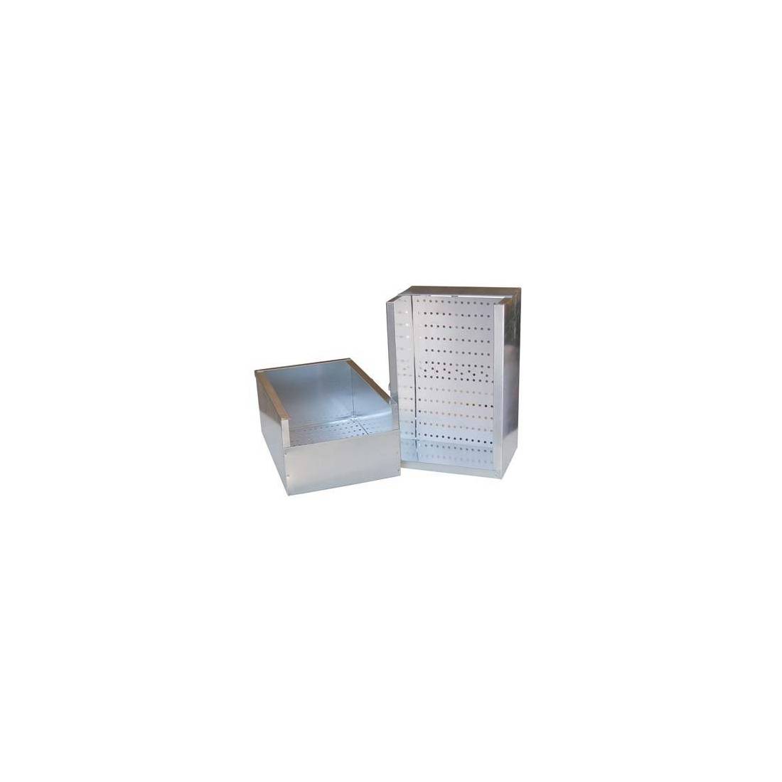 En tôle galvanisée avec petits trous d'aération au fond. À placer à l'intérieur de la cage.
