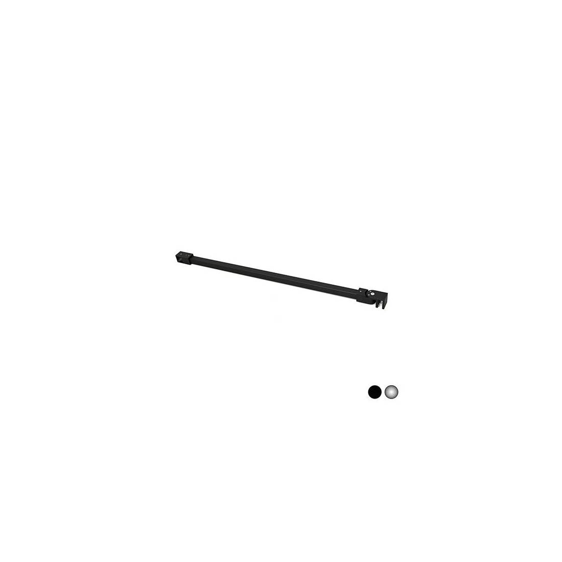 Bras de support carré avec support en T, L.65 cm, finition chrome ou noir. Équipé d'un double joint pour une installation sur des vitres d'une épaisseur de 6 mm ou 8 mm. (DianFlex) Dimensions : 65 cm Arg. luc.
