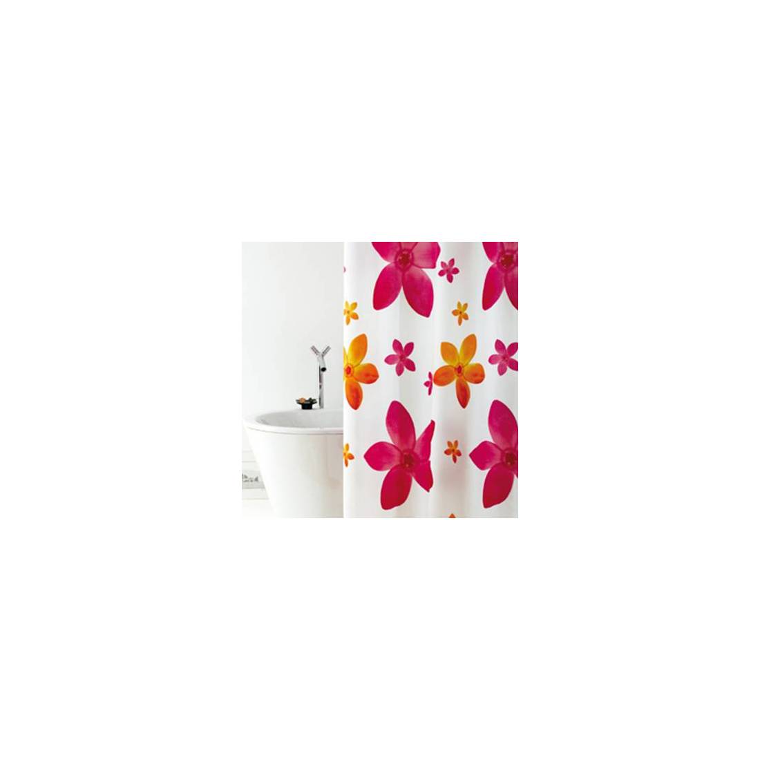 Rideau en tissu, à installer sur les receveurs de douche à l'aide de tringles spéciales. Fourni sans les 8 crochets de fixation (Notre réf. 102-090) (DianFlex) Dimensions : 120 x 200 cm