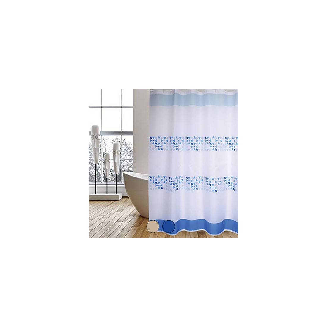 RIDEAU DE DOUCHE EN TISSU POLYESTER PORTO Dimensions : 180 x 200 cm Bleu
