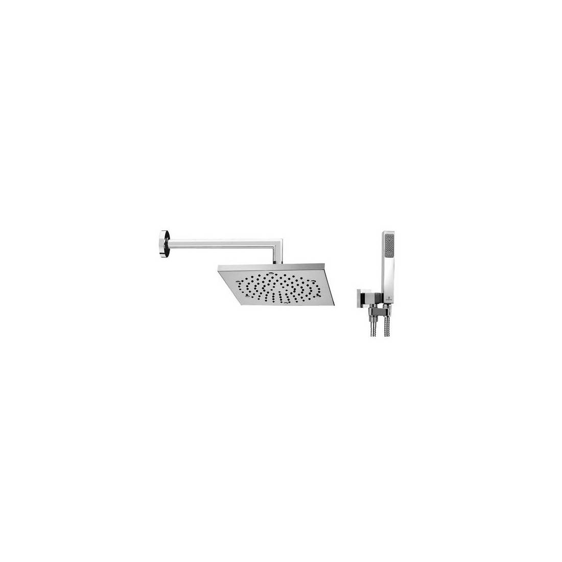 Bras de douche avec pomme de douche CUBE 260X260 mm avec bras de douche D. 21 x 300 mm . + douchette et support Cube avec flexible de 150 cm (DianFlex) Dimensions : Chrome