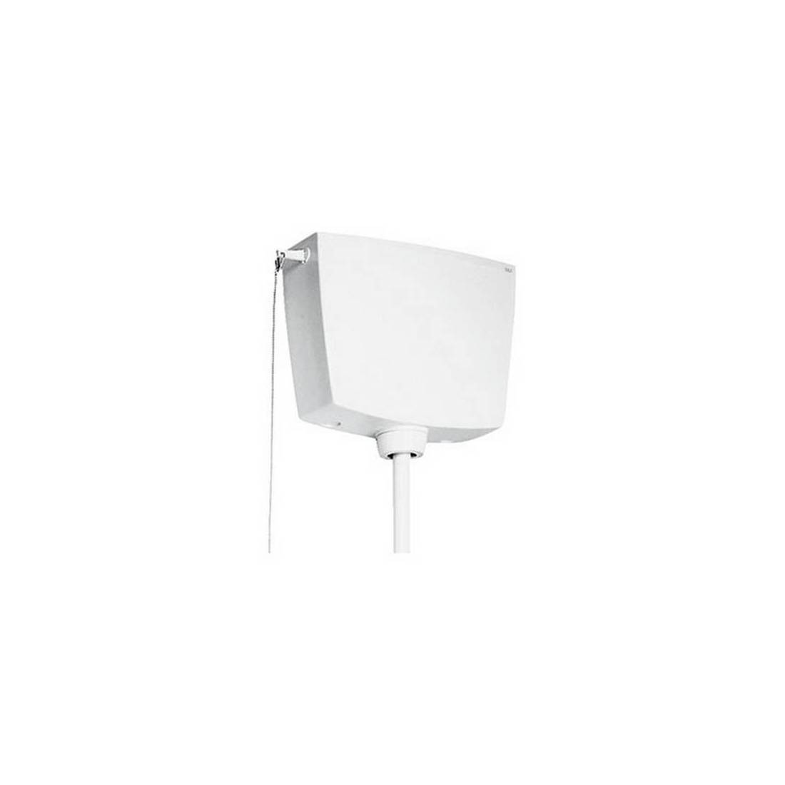 Réservoir Turquoise à chasse unique (avec couvercle et robinet ½"). Installation en position haute avec commande à chaîne. Réservoir fabriqué dans un matériau résistant (PS), inaltérable dans le temps et résistant à la température ambiante. Robinet à flotteur JOLLY UNI silencieux, certifié conforme à la norme NF catégorie I de bruit. Isolation acoustique et anti-condensation interne. Entrée d'eau latérale droite/gauche. Épaisseur 145 mm. Marquage CE EN14055. (DianFlex) Dimensions : Blanc 6-9 l