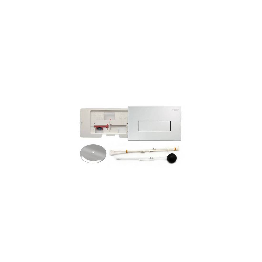 CODE D'USINE : 80176750. Kit universel Cuivre 10/14 l polyéthylène 10/14 l comprenant : Tiges avec groupe de levage. Deux tirants avec bille. Cadre guide-bille. Bride de fermeture du trou du manchon. Rosace en acier inoxydable pour recouvrir le trou. Plaque Sara blanche avec porte 90179660. (DianFlex)