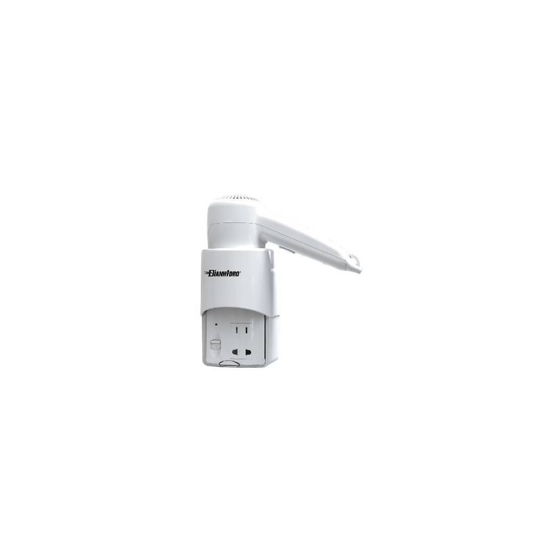 Sèche-cheveux mural Nuan, puissance maximale 1100 W. Alimentation 100-130 V, 220-240 V, 50 Hz. Vitesse du moteur : 5500 tours par minute. Indice de protection IP22. Prise pour rasoir 110 V + 220 V. Matériau : ABS, couleur blanche. Poids net 1,1 kg, poids brut 1,3 kg. (DianFlex) Dimensions : LxHxP : 110x220x90 mm