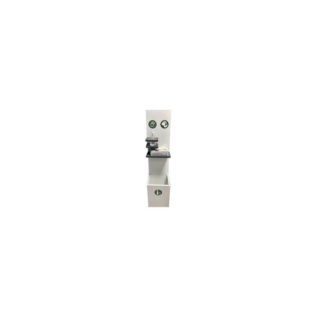 COLONNE EN BOIS MDF POUR GEL DÉSINFECTANT ET GANTS AVEC POUBELLE Dimensions : HxLxP 130x30x30 cm