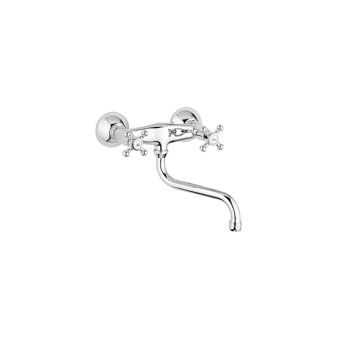 Ensemble évier mural avec bec orientable comprenant : aérateur M22x1 ; jeu de 2 excentriques 1/2" x 3/4"G et rosaces. Avec bec S 18x180 mm .(DianFlex) Dimensions : Chrome