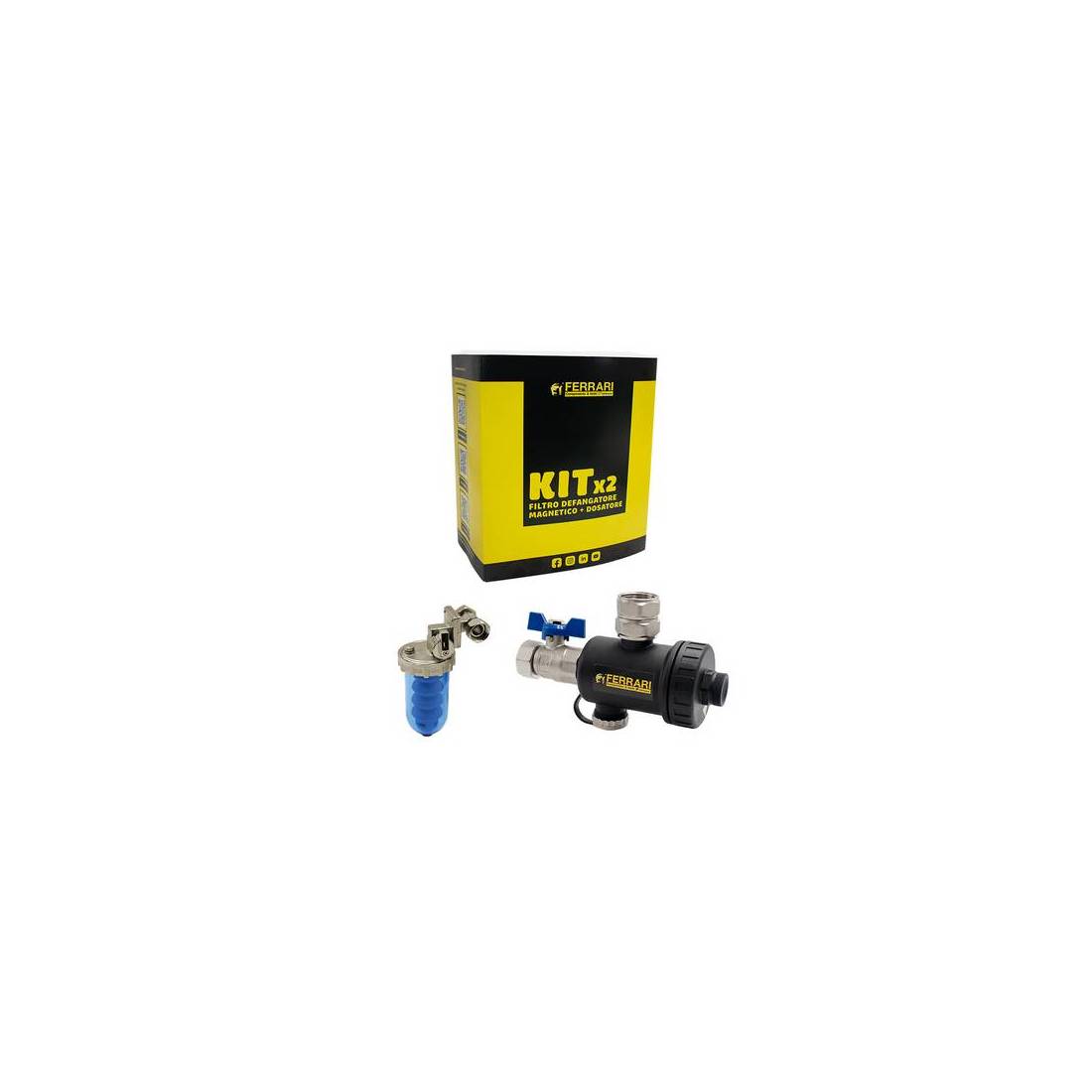 Le kit comprend : 1 filtre magnétique MagBlack ; 1 doseur de polyphosphates Dosafer avec by-pass et bague rotative horizontale et verticale, livré avec 1 cartouche de 80 g. Certifié Food Grade pour usage alimentaire (DianFlex).