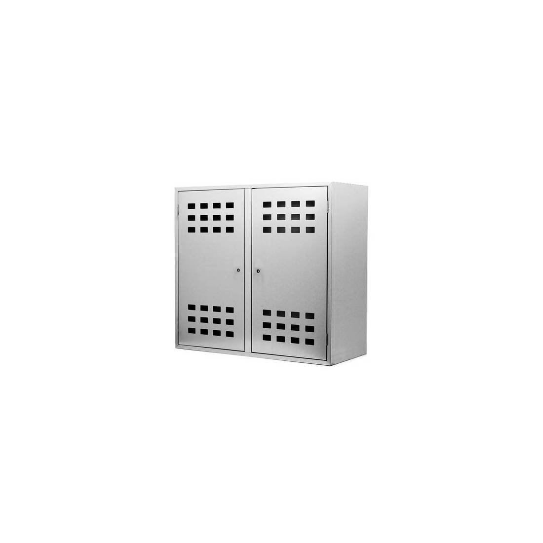 DKCoffre extérieur pour 2 bouteilles de gaz de 15 kg. Fermé à l'arrière. En tôle galvanisée d'une épaisseur de 0,6 mm (DianFlex) Dimensions : 90 x 98 x 42 cm (H x L x P)