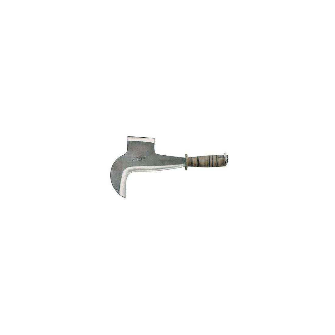 En acier forgé et trempé. Manche en cuir.