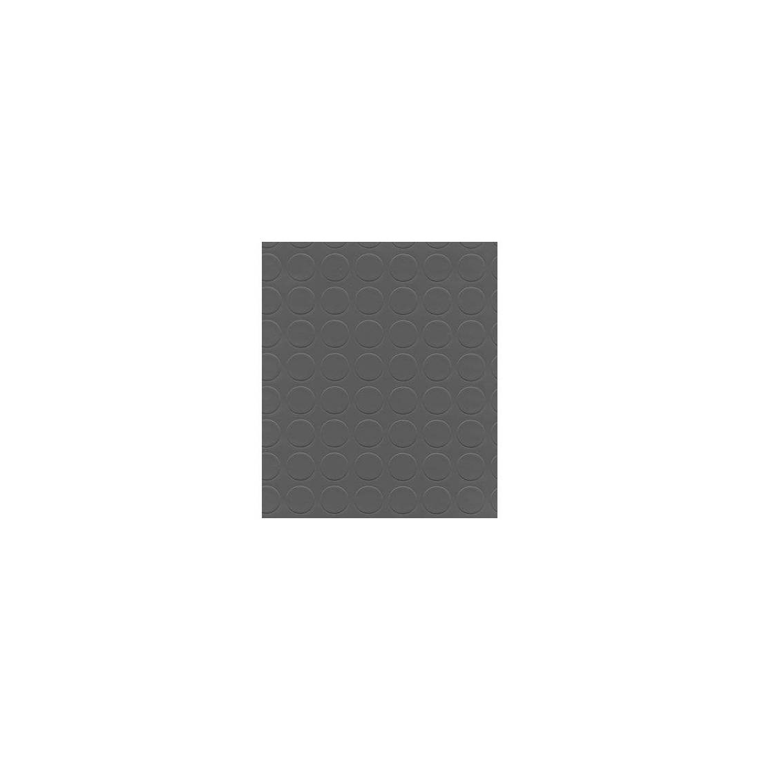 En PVC hétérogène avec surface à relief de 25 mm de diamètre. Couche d'usure de 0,25 mm. Épaisseur de 1,0 mm. Poids de 2,0 kg/m².