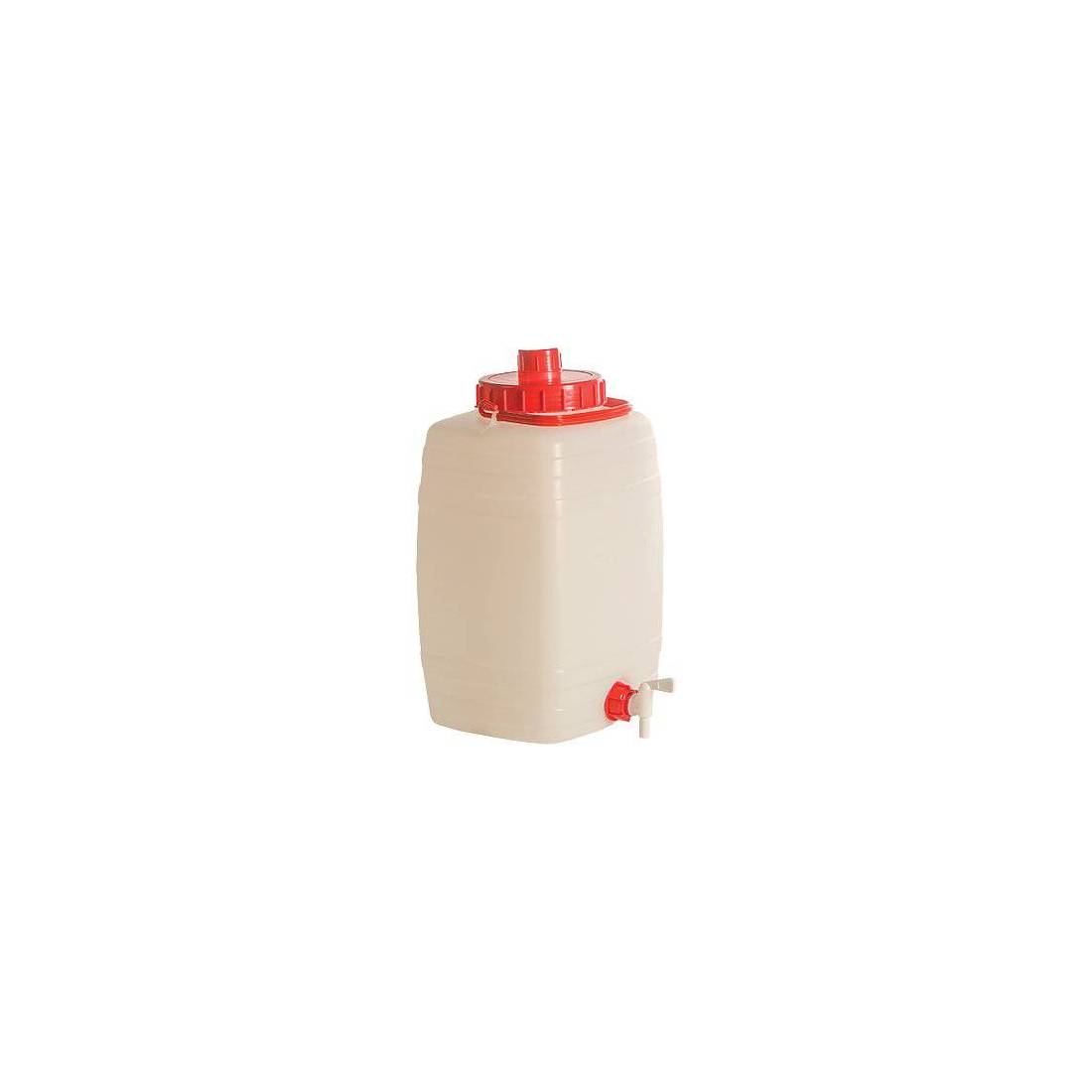 Pour aliments. En polyéthylène non toxique, avec robinet, couvercle, évent et poignée.