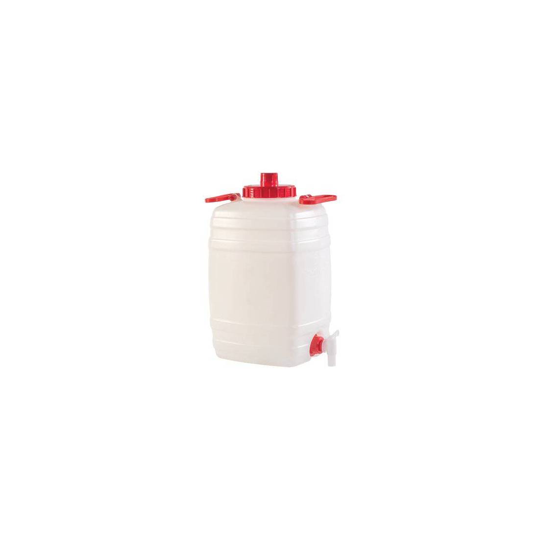 Pour aliments. En polyéthylène non toxique, avec robinet, couvercle, évent et poignée.