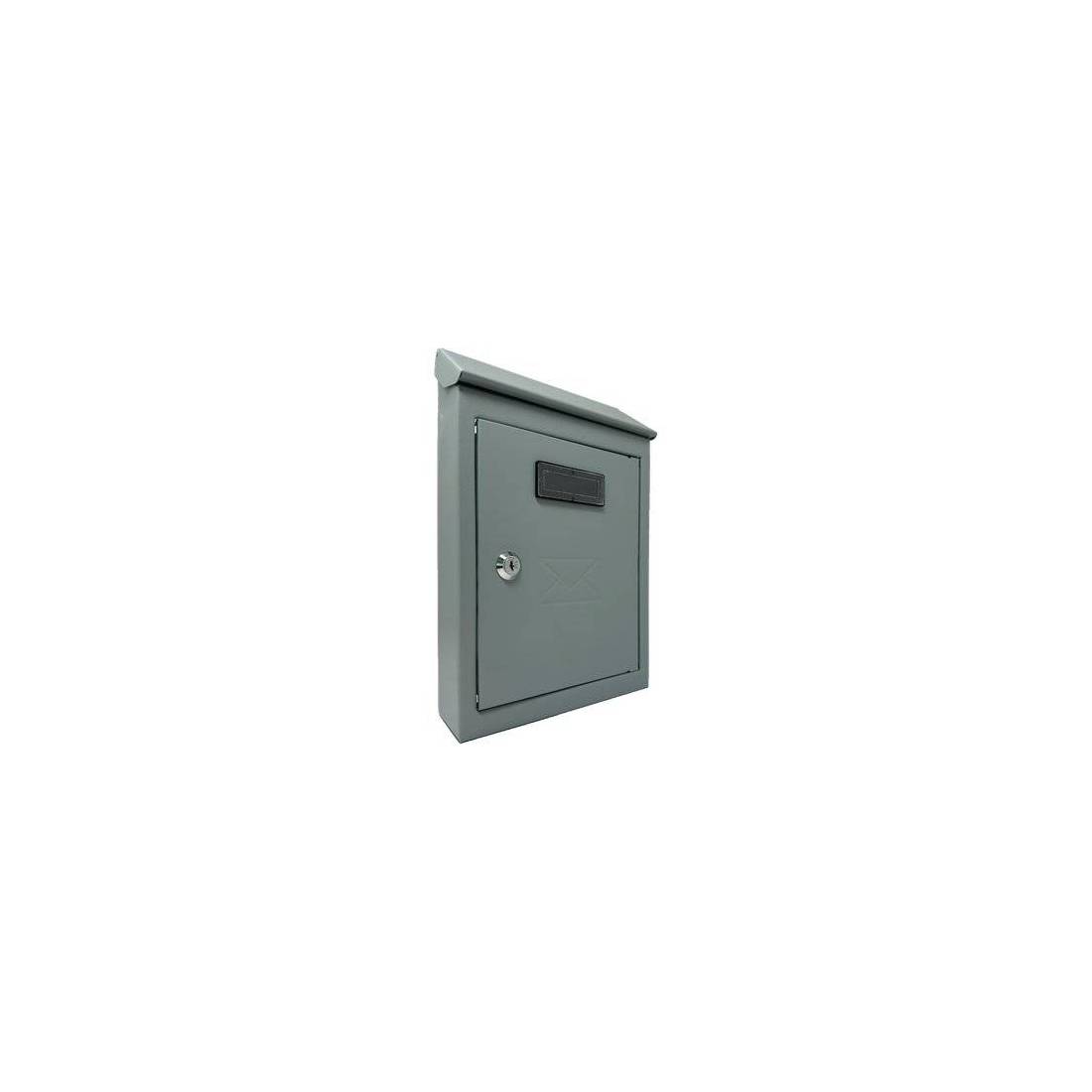 En tôle peinte. Ouverture du toit et de la façade. Serrure à cylindre avec double clé. Avec porte-étiquette en plastique transparent.