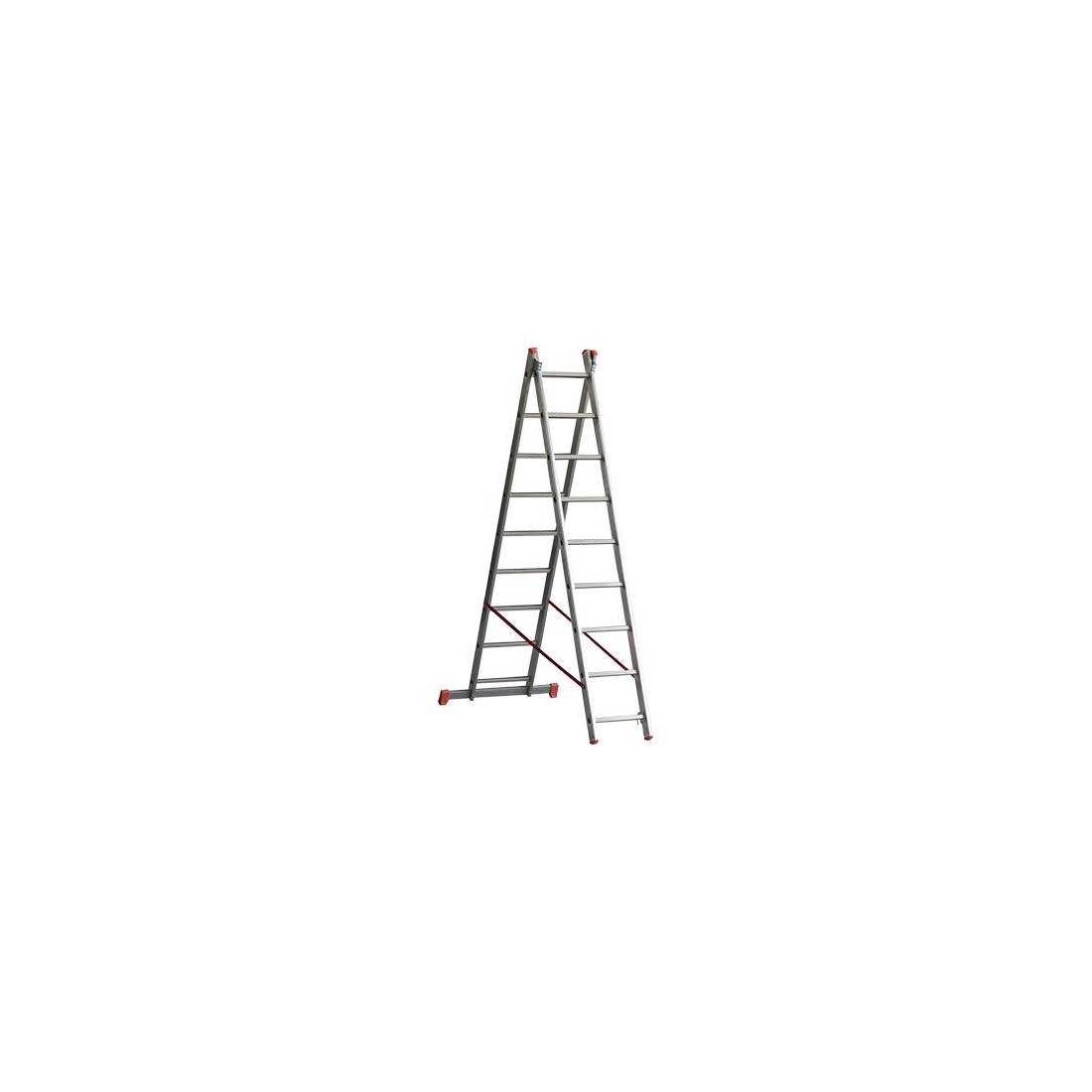 Échelle à 2 éléments en aluminium. Échelons antidérapants moletés avec section de 28 × 28 mm, avec un pas de 280 mm. Base élargie pour une plus grande stabilité avec des talons ergonomiques surdimensionnés et antidérapants. Sangles anti-ouverture. Charnière en acier avec ouverture facilitée. Dispositif de blocage des troncs. Angle d'ouverture conçu pour une position de travail confortable, permettant d'appuyer le corps en toute sécurité. Charge maximale 150 kg. Conforme à la norme européenne EN 131 et au décret législatif 81/2008, art. 113. Clés et boulons de montage fournis.