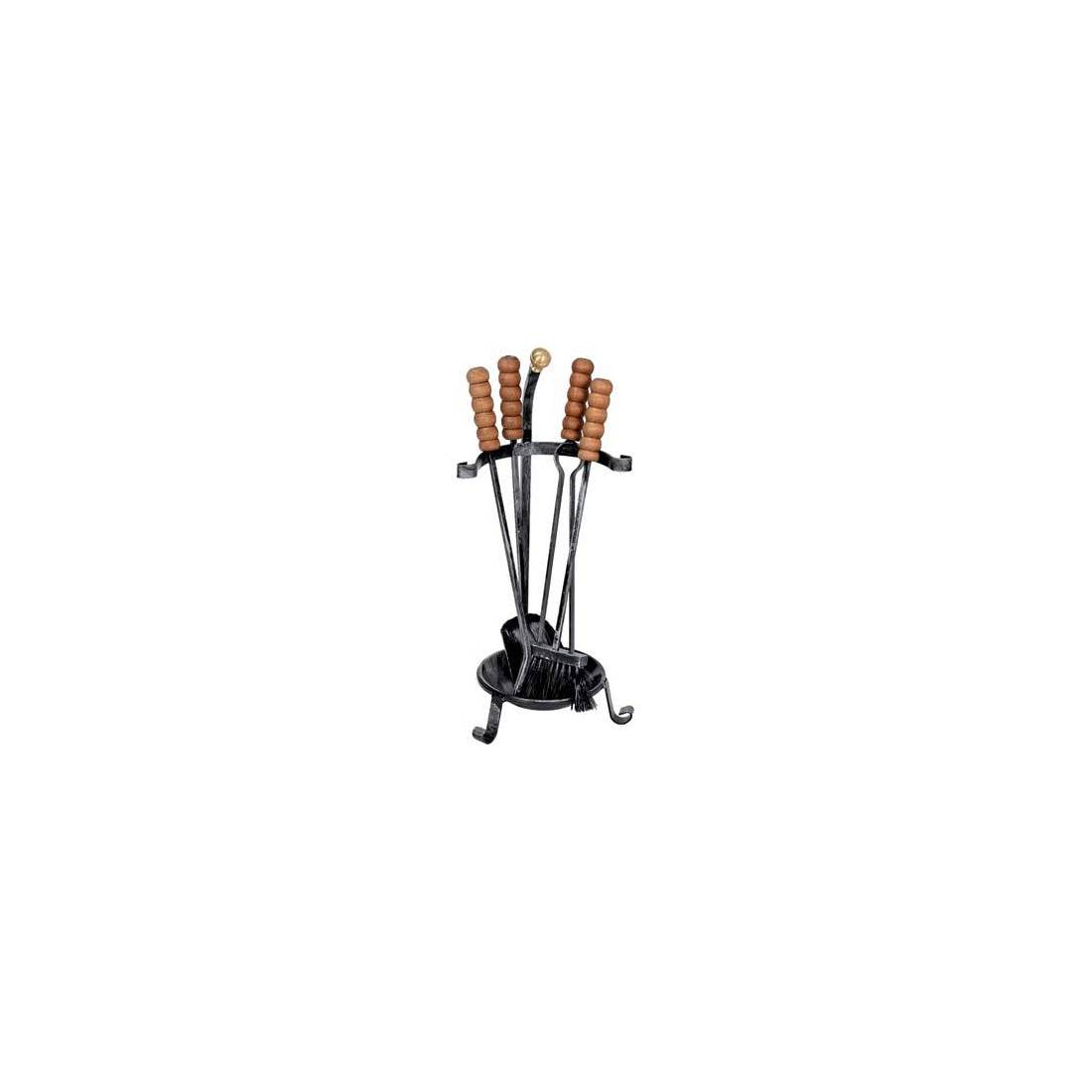 En fer forgé peint. Bouton en laiton. 4 outils avec socle.