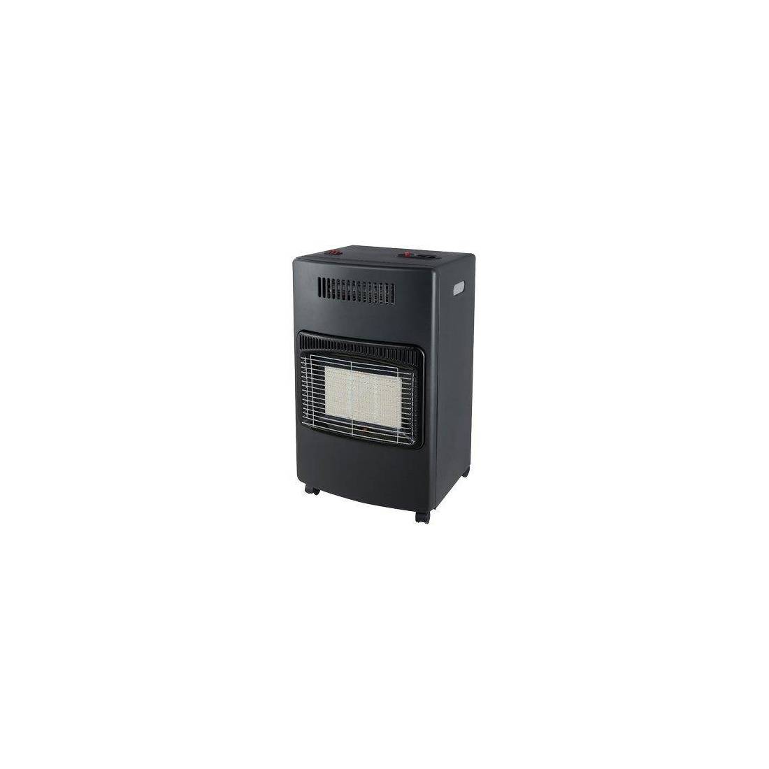 En acier peint en noir. Avec brûleur infrarouge à haut rendement. Éléments céramiques à haut rendement. Système ODS. Soupape anti-retour. Pour des pièces d'environ 20 à 100 m². Allumage piézoélectrique. Avec roulettes. Compartiment pour bouteille de 15 kg. Consommation maximale de gaz : 305 g/h. Équipé d'un ventilateur 800/1600 W pour une diffusion plus rapide de la chaleur. Le poêle est conforme aux directives et réglementations CE. Poids : 10 kg.