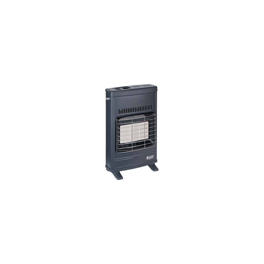 Poêles muraux avec brûleur infrarouge. Chauffent environ 110 m³. Avec trois positions de chauffage et blocage du gaz en l'absence de flamme. Allumage piézoélectrique. Avec pieds d'appui au sol. Couleur grise. Poids 10 kg. Homologué CE.