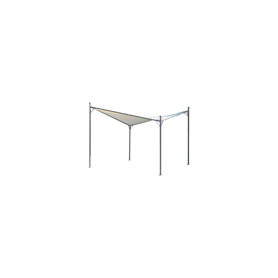 Structure composée de poteaux en acier peint d'un diamètre de 60 mm et d'un toit en tubes d'acier peint d'un diamètre de 38 mm. Bâche de couverture en polyester imperméabilisé de 250 g/m².